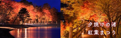 山中湖では「夕焼けの渚紅葉まつり×竹あかり」が開催されます。