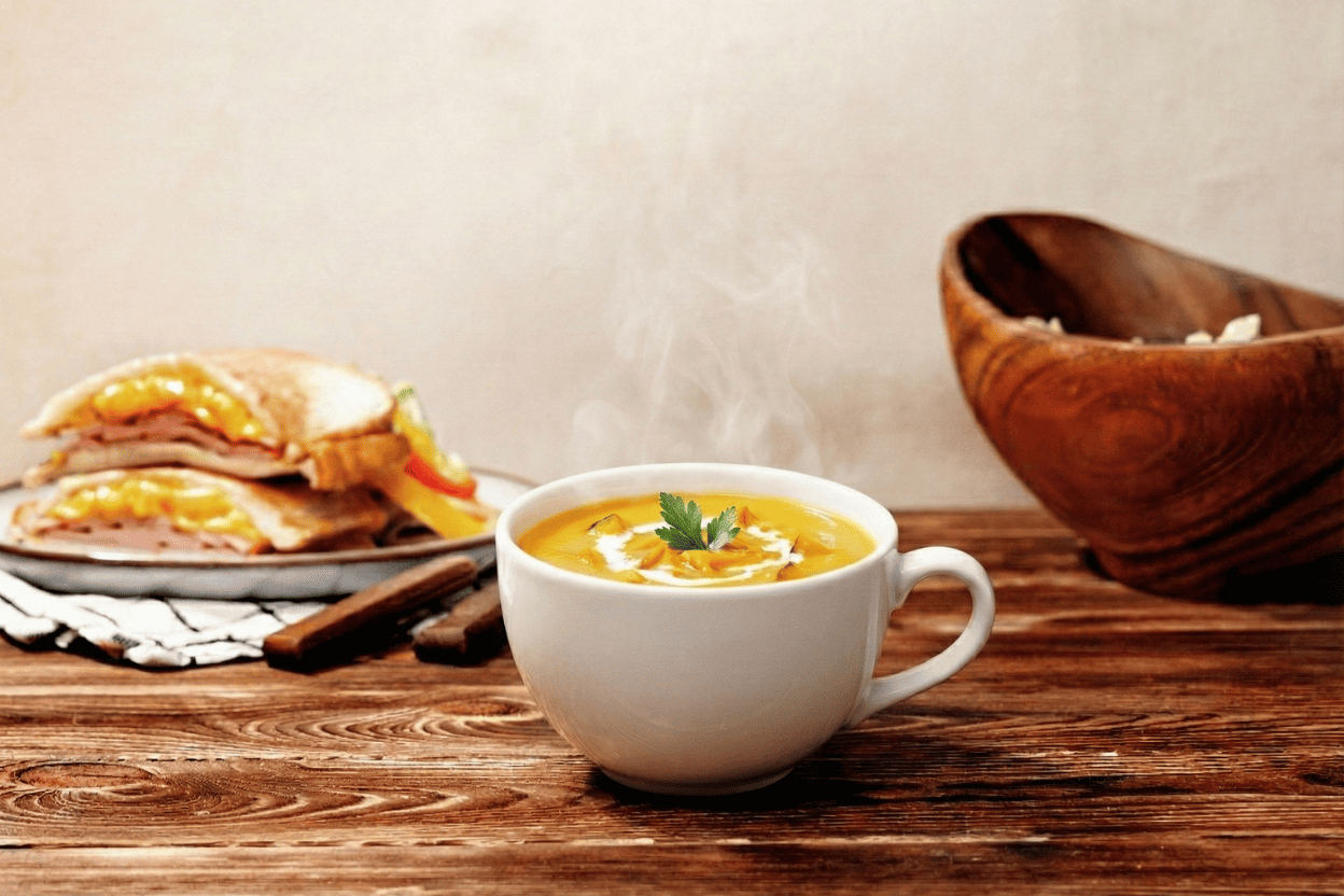 3月末まで、かぼちゃの優しい甘みが溶け込んだ温かいポタージュをご用意しております。 ぜひ、今の季節ならではの味わいで、元気な1日のスタートをお迎えください。