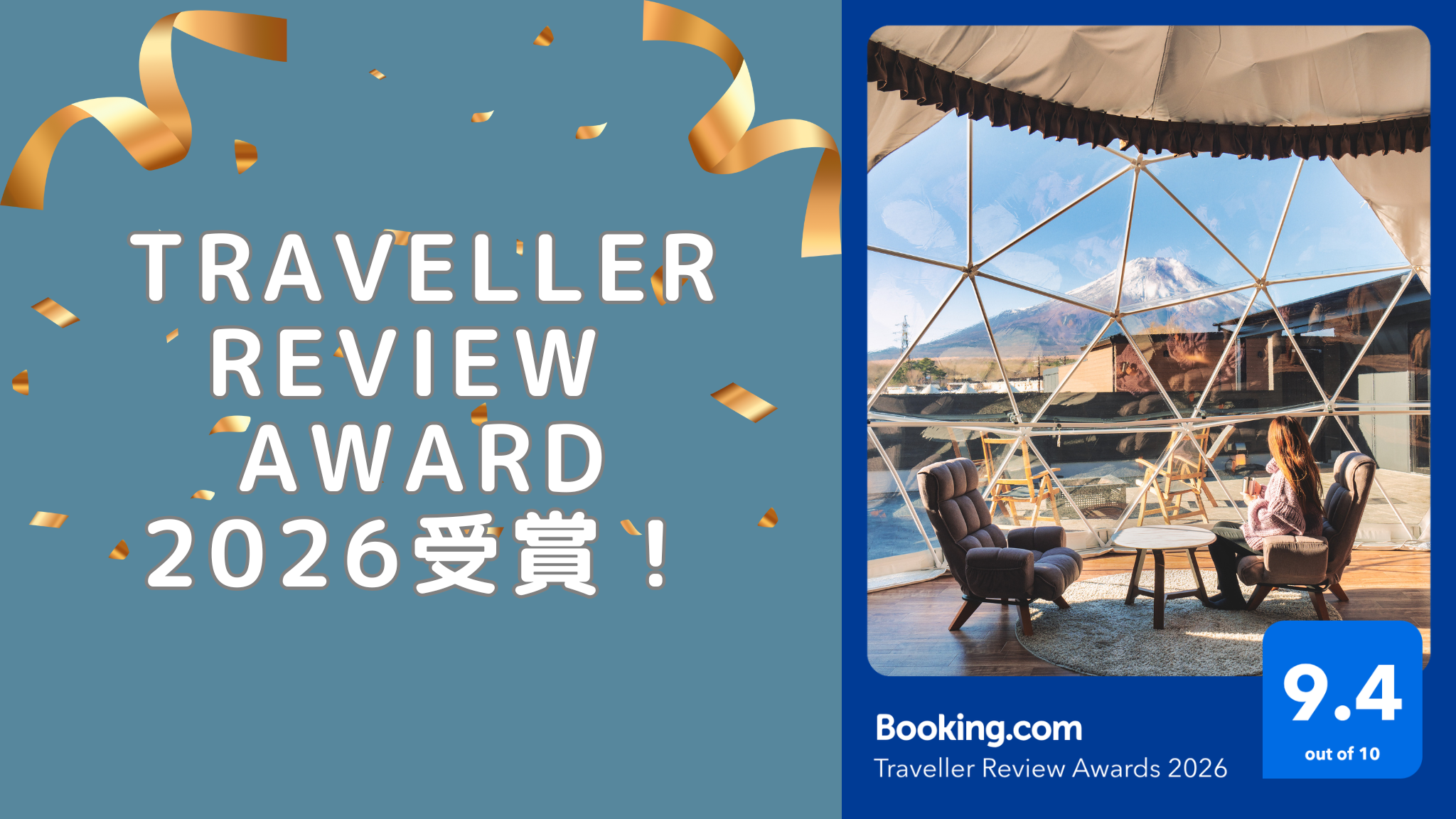 この度、世界最大級の宿泊予約サイト「Booking.com」において、極めて高い評価を得た施設に贈られる「TravellerReviewAwards2026」を受賞いたしました。