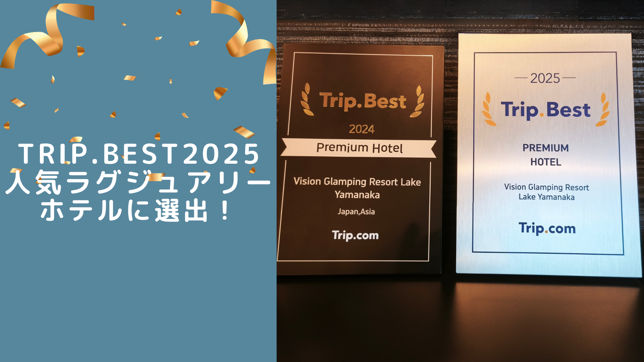Trip.comが選ぶ、旅のランキング「Trip.Best 2025」に、ビジョングランピングリゾート山中湖が選ばれました。 なんと、2024年に続き2年連続での受賞です!