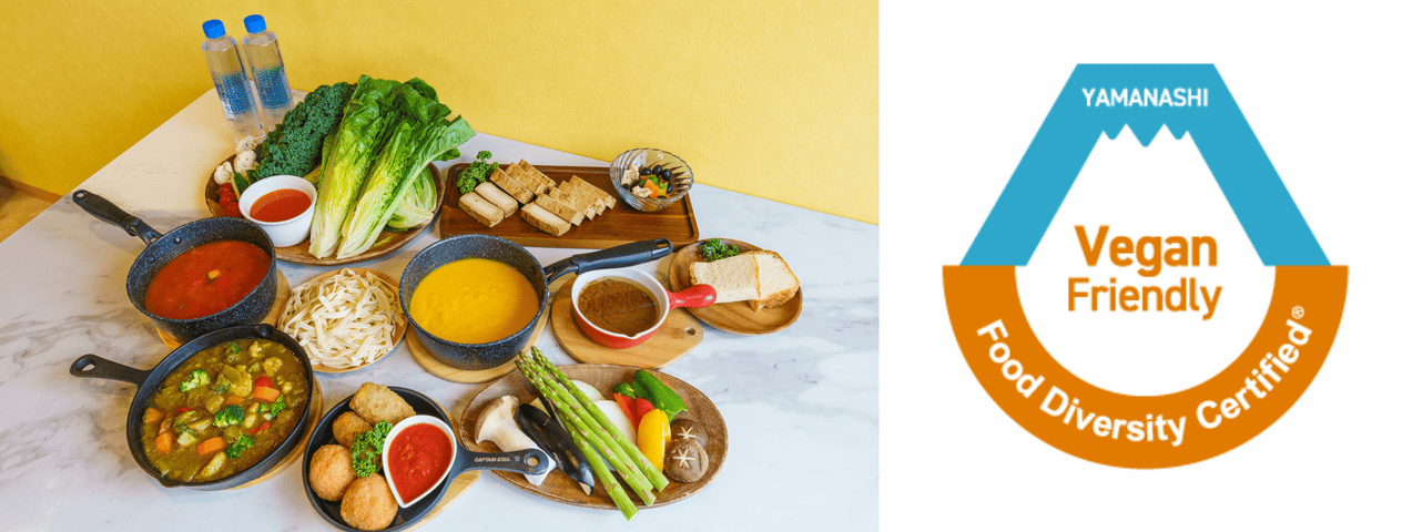 この度、当施設でご提供しておりますヴィーガンメニューが、山梨県の定める「やまなしフードダイバーシティ認証」において、「ヴィーガンフレンドリー」の認証を取得いたしました。