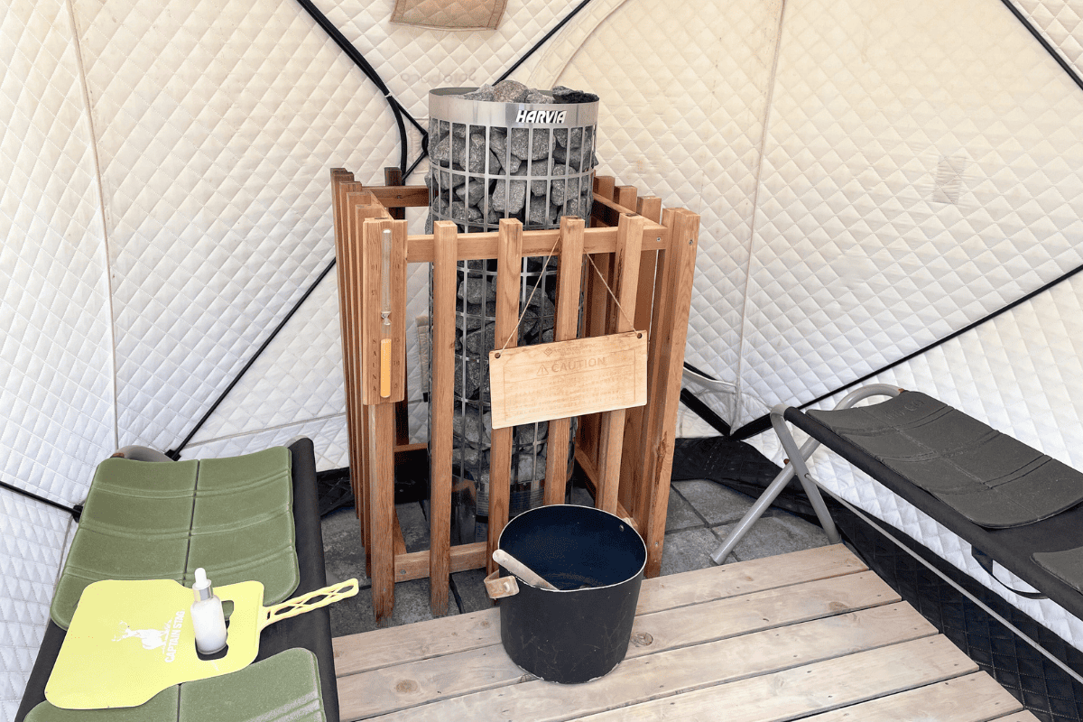 浴室内设有帐篷式桑拿和冷水浴,冷水浴采用富士山麓的纯净地下水。户外休息区备有舒适的休闲椅,让您在呼吸新鲜空气的同时放松身心。在您入住期间,您可以自由调节桑拿和水浴的温度,随心所欲地享受美好时光。